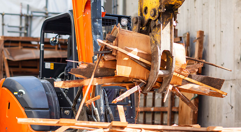 当社には、豊富な経験を持つスタッフが多数在籍しており、大規模な建物の解体工事も安全かつ確実に進めることができます。例えば、ビルや工場などの大規模な建物の解体を行う際には、まず事前に役所への必要な書類を提出し、許可を取得します。そして、解体作業が始まるときには、現場の安全対策を徹底し、建物の周囲に足場を組んでしっかりと防護ネットを張り、周辺への影響を最小限に抑えるよう努めています。